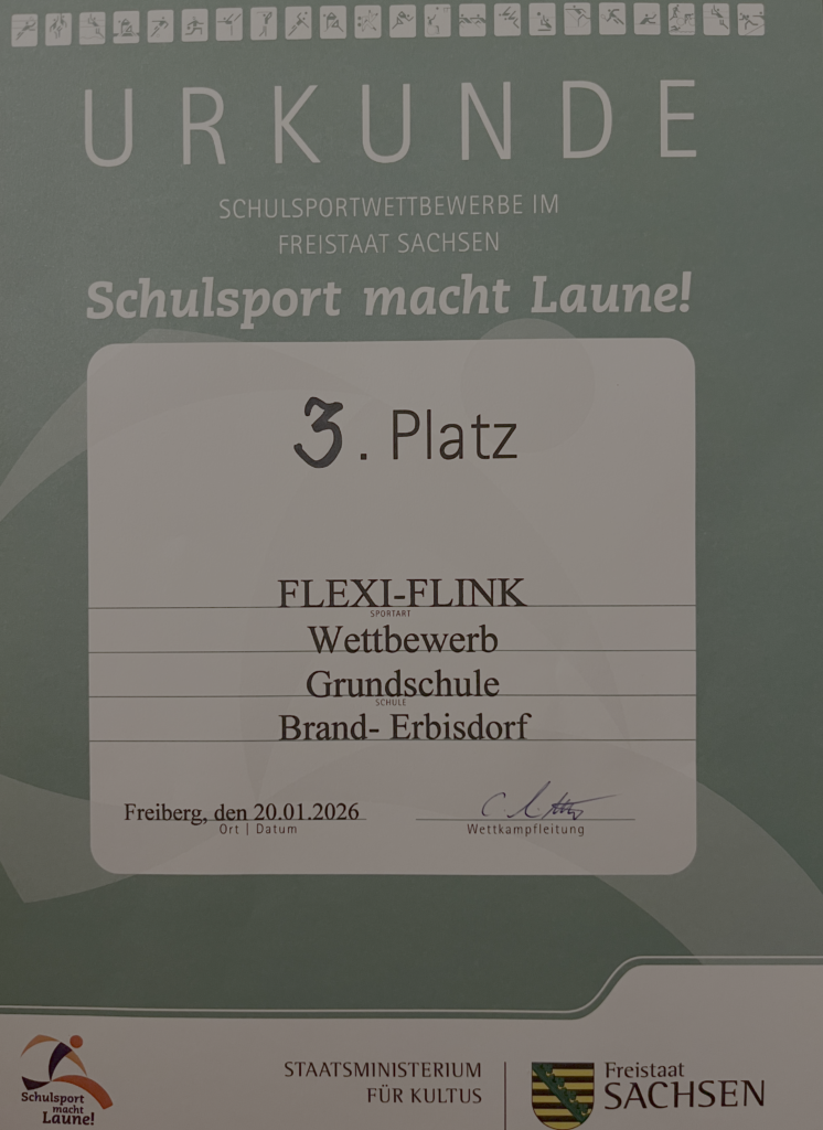 am Dienstag, 20. Januar 2026 fuhren 14 Sportlerinnen und Sportler der Klassenstufen 2- 4 mit Herrn Wermuth sowie unter Begleitung von Herrn Mende nach Freiberg. Auf dem Programm standen Hindernissläufe, Geschicklichkeitsaufgaben als auch Wurf- und Jonglierkünste. Im Wettbewerb traten unsere Kinder gegen fünf andere Grundschulen an. Zum Schluss konnten sich unsere Kinder schließlich durchsetzen und haben einen verdienten 3. Platz errungen.